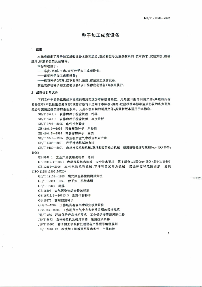 GB/T21158-2007種子加工成套設(shè)備國家標(biāo)準